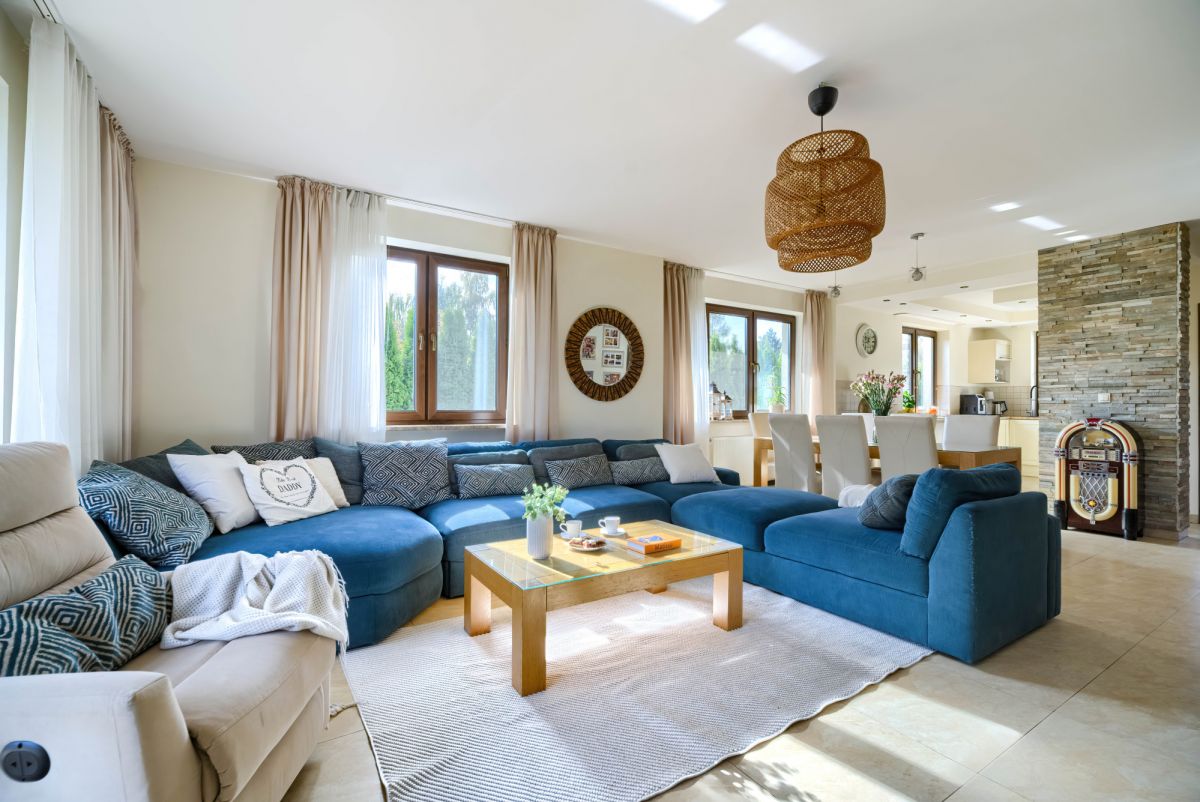 • Duży, jasny salon z jadalnią i wyjściem na taras (ok. 60 m²)