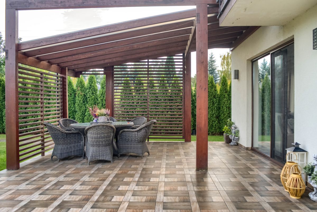 • Częściowo zadaszony taras - idealny do wypoczynku i spotkań w ogrodzie