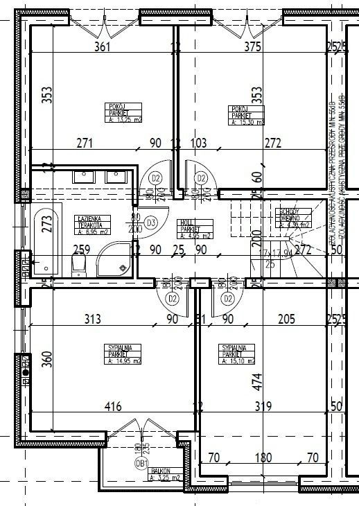 Łączna powierzchnia 73,05 m2.Piętro: - pokój 14,95m2 z wyjściem na balkon,