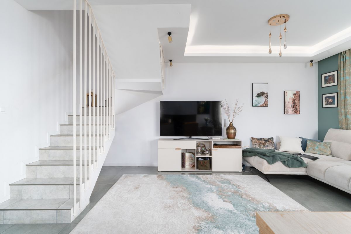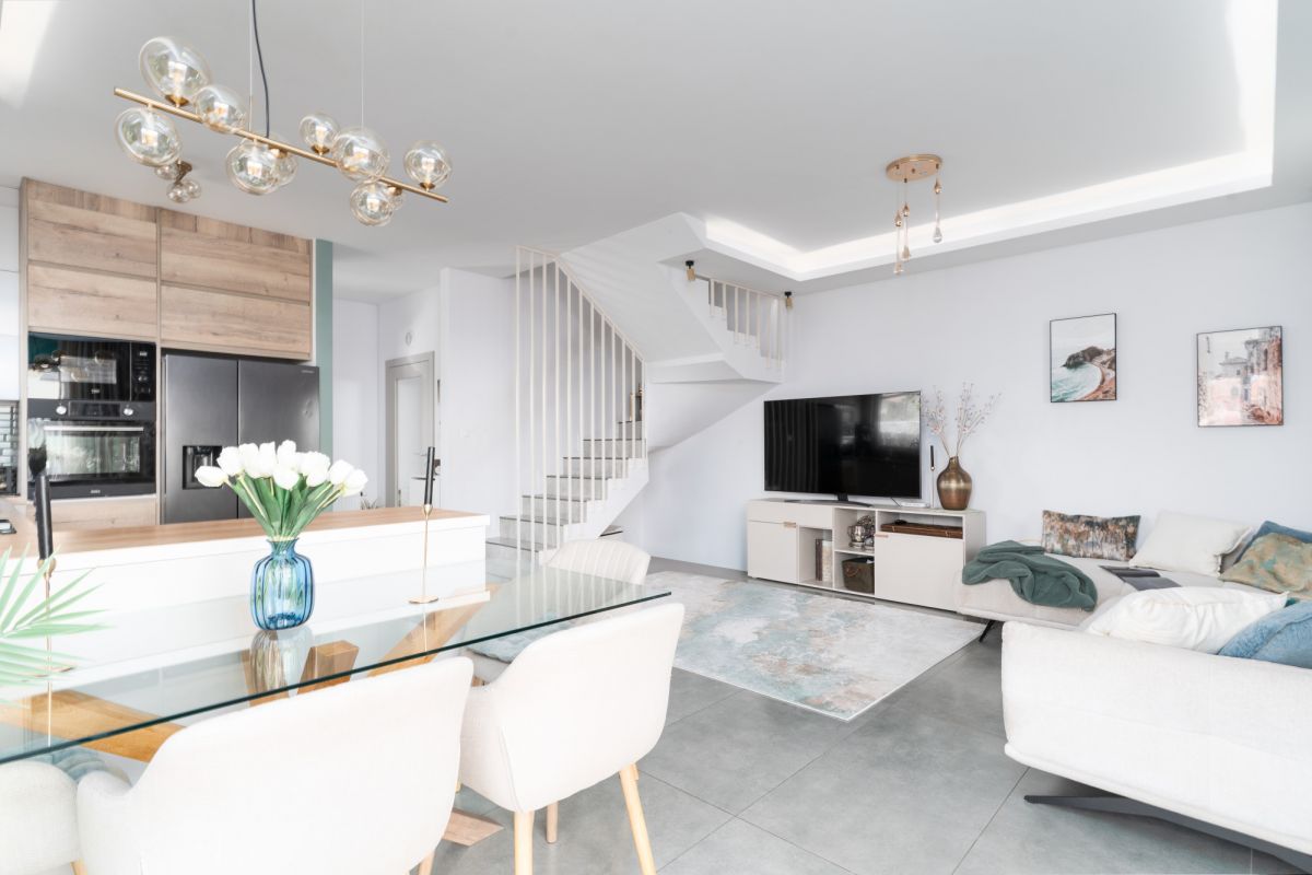 Stonowana kolorystyka, doskonale dobrane dodatki zapewniają poczucie spokoju, komfortu i wypoczynku. To dom szczególny, doświetlony, przytulny, taki, w którym chce się od razu zamieszkać.