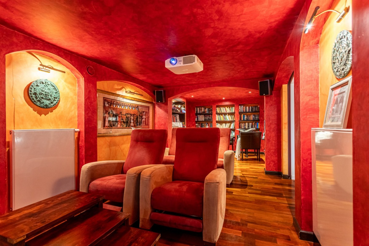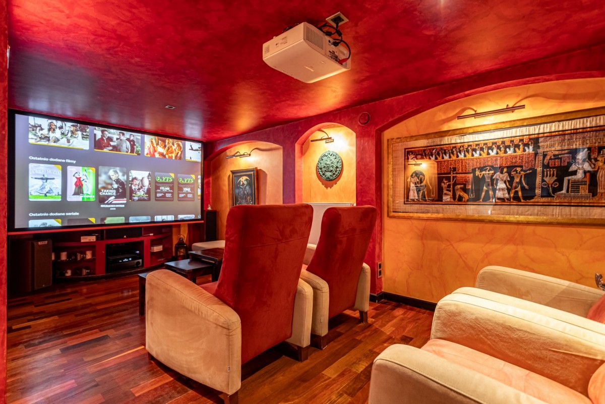Kondygnacja -1 to połączenie funkcjonalności i przestrzeni dla relaksu. Znajduje się tu toaleta dla gości, pralnia, kotłownia i przejście do dwustanowiskowego garażu, ale i imponujący, niezwykle klimatyczny pokój kinowy z profesjonalnym rzutnikiem i fotelami kinowymi, idealny na wieczory filmowe.