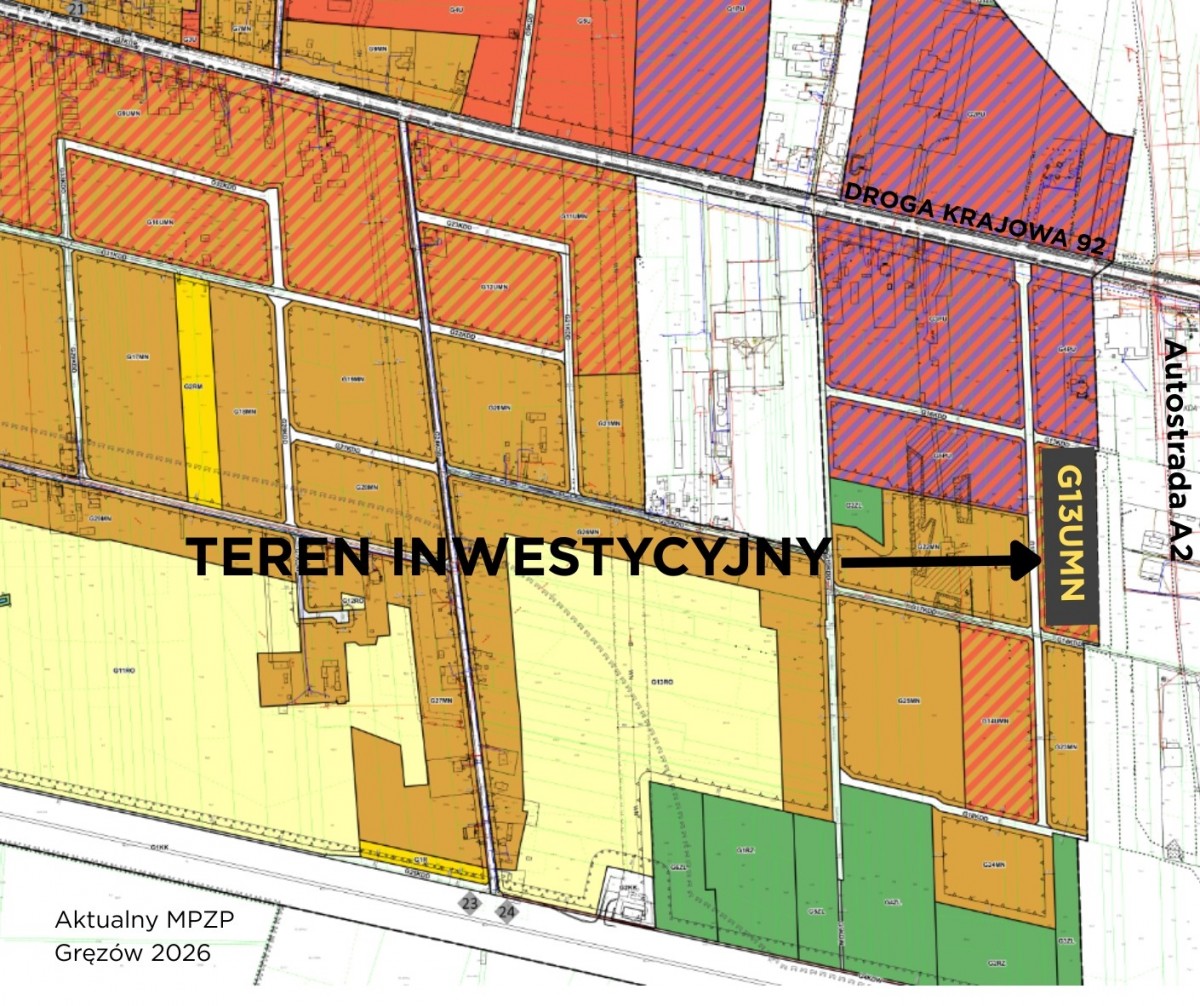 Przeznaczenie (MPZP): Teren objęty planem zagospodarowania przestrzennego - symbol G13UMN (tereny zabudowy usługowej i mieszkaniowej ).