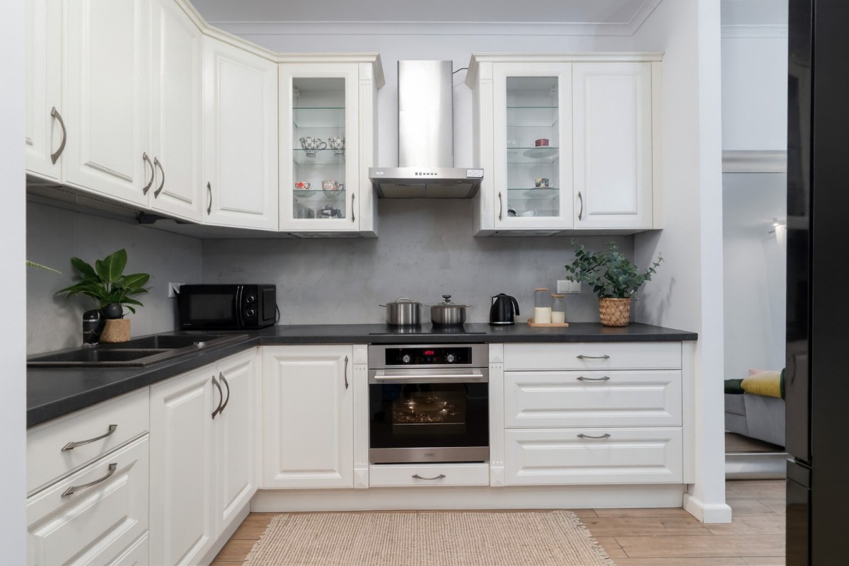 - Modern kitchen fully equipped with household appliances, open both to the living room and the hallway, creating a harmonious and airy living space.