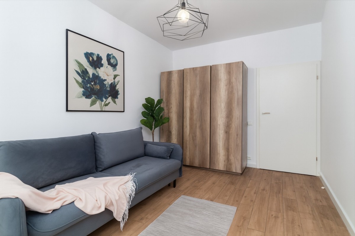 - Sypialnia z kanapą i pojemną szafą.