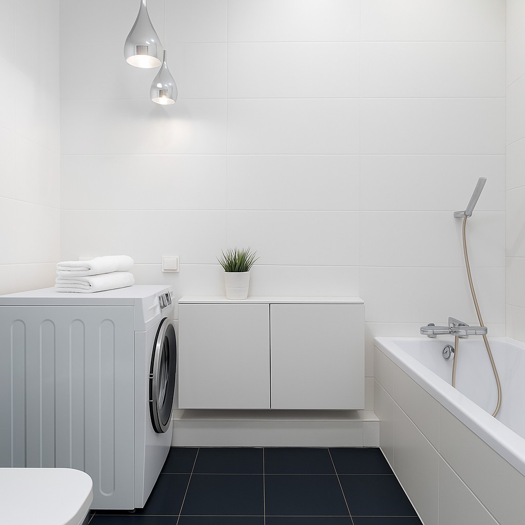 - Bathroom with a bathtub in a classic, bright design.