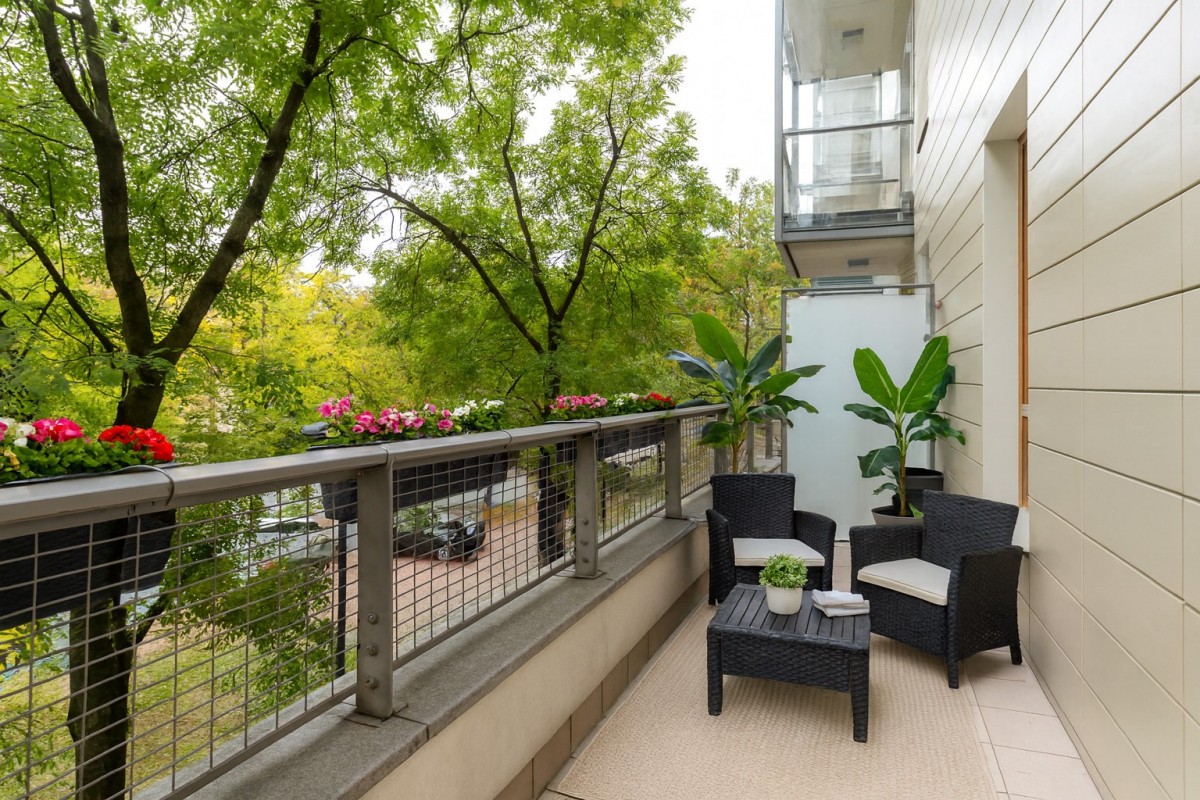 - Balkon, zapewniający kameralną przestrzeń do wypoczynku.