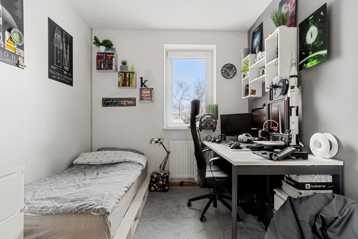 Nieruchomość posiada bardzo komfortowy układ funkcjonalny - sypialnie oddalone są od części dziennej, dzięki czemu dźwięki dobiegające z salonu i aneksu kuchennego są niemal niesłyszalne w sypialniach.