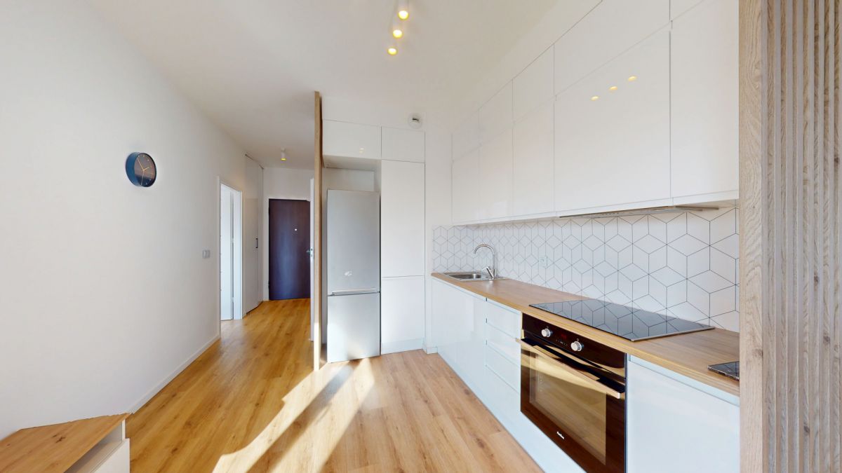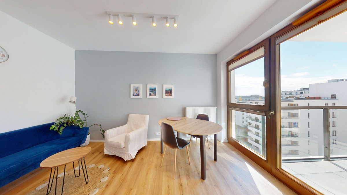 Komfortowe, nowocześnie urządzone mieszkanie o powierzchni 42 m², na 7 piętrze budynku z 2022 roku. Zamknięte, monitorowane osiedle.