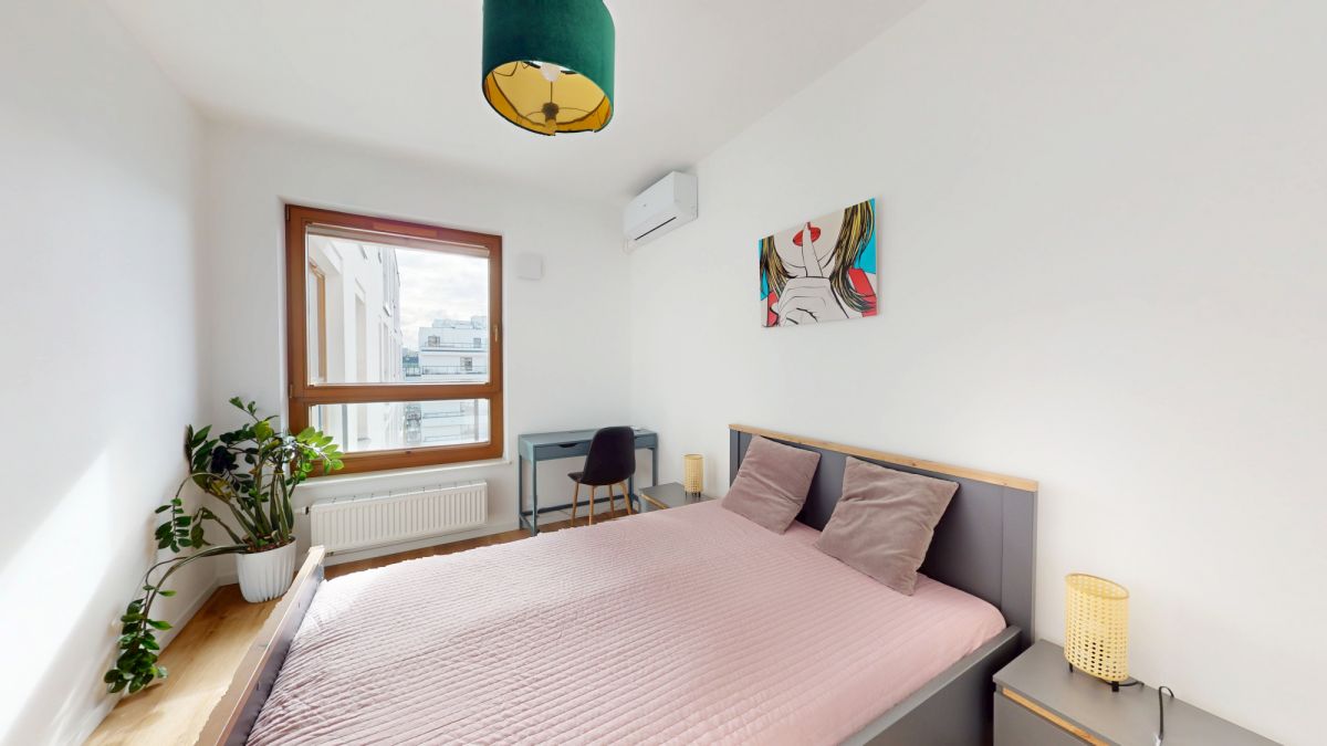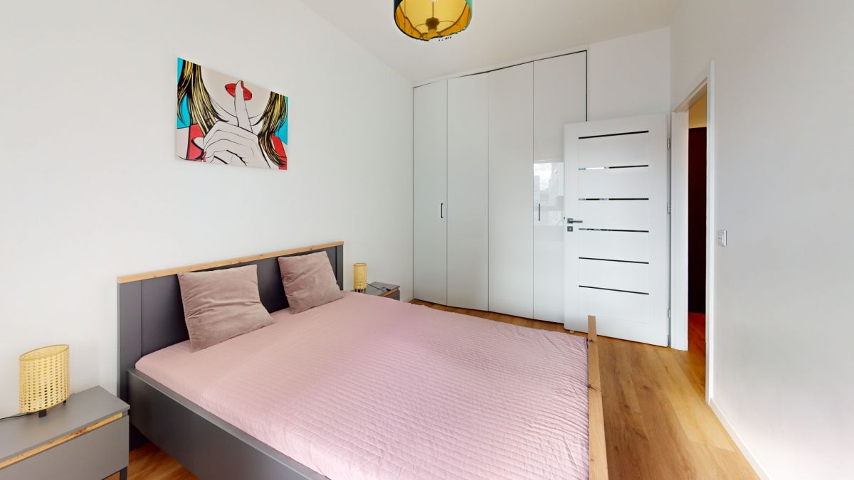 - Sypialnia - jasna, przytulna, z dużym łóżkiem dwuosobowym oraz pojemną szafą w zabudowie.