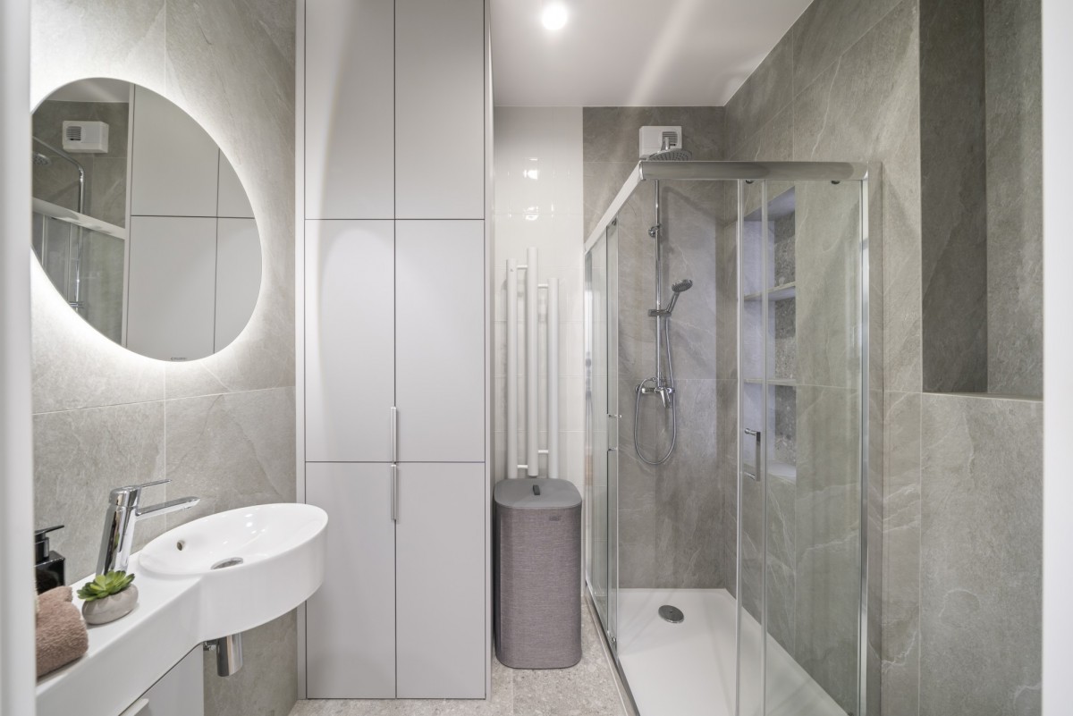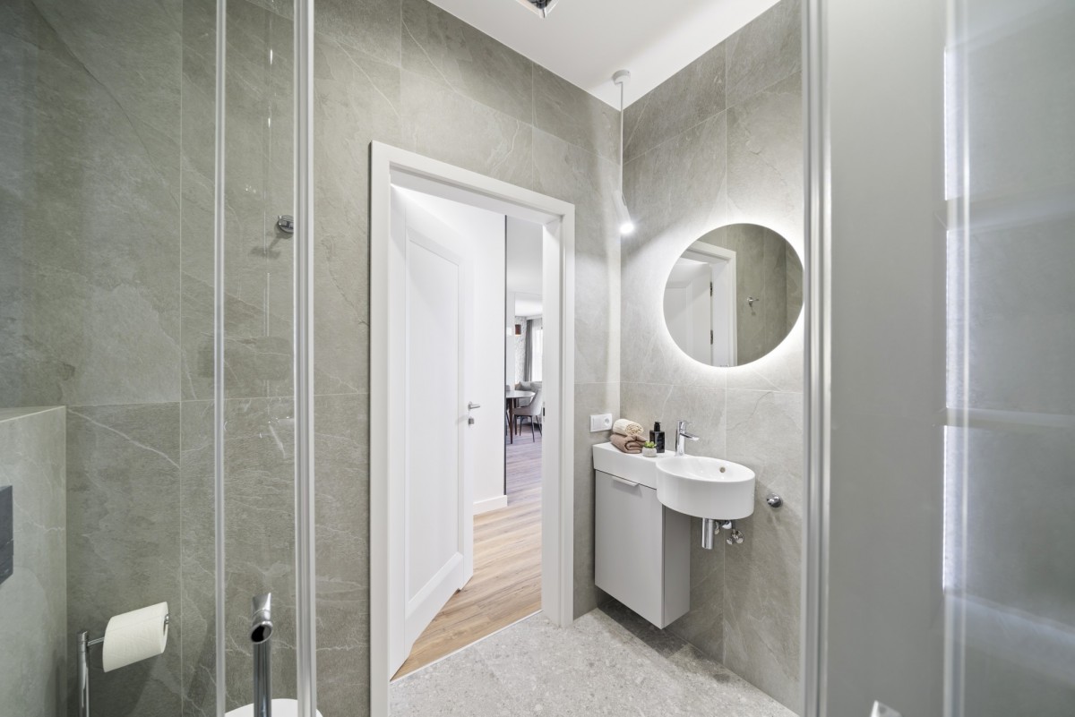 Pełna klimatyzacja Panasonic we wszystkich pomieszczeniach mieszkalnych (pokoje, przedpokój).