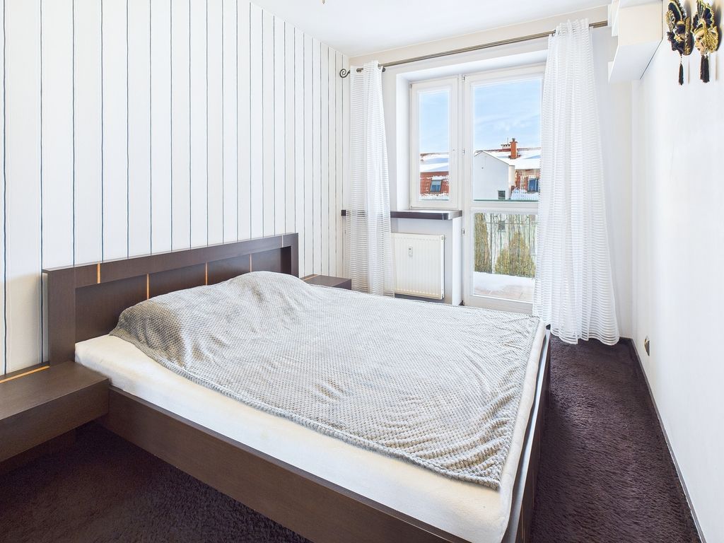 - Sypialnia: Ustawny pokój zapewniający komfortowy wypoczynek, z wyjściem na balkon