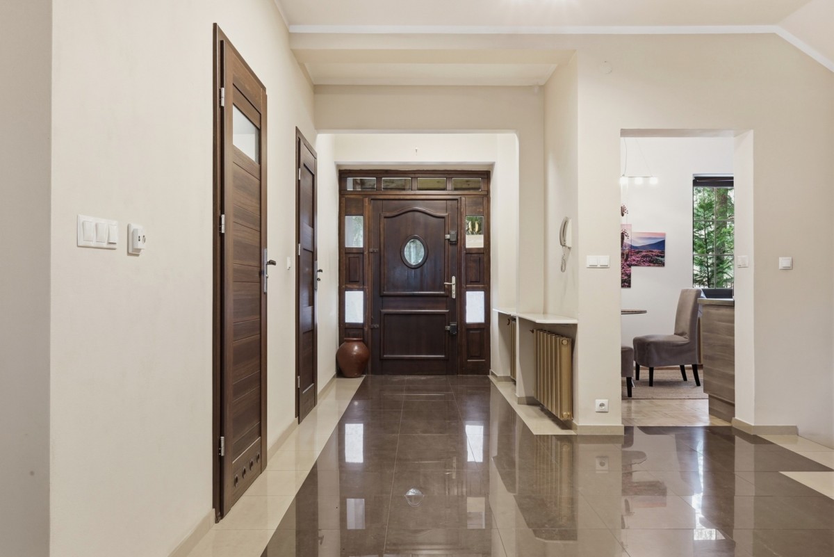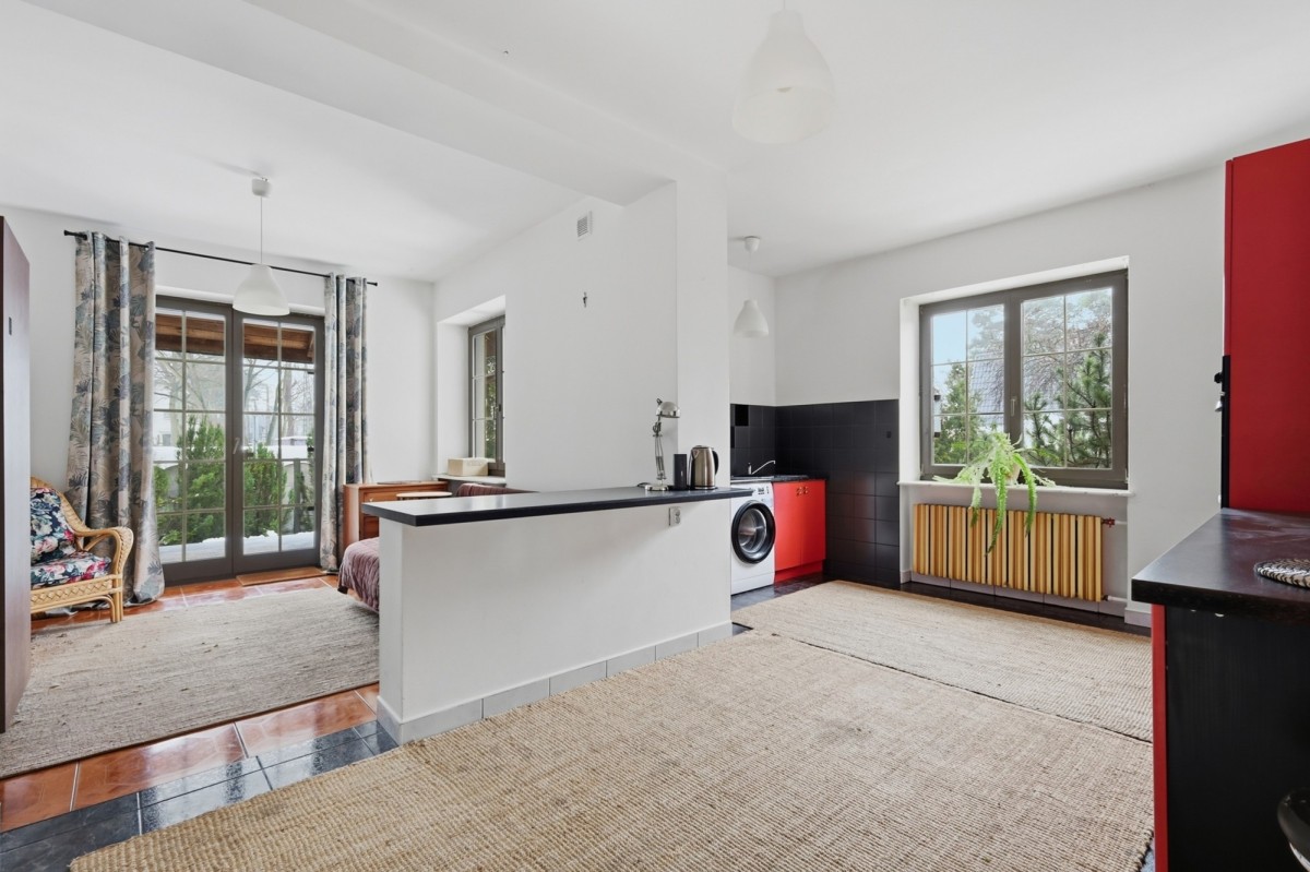 Dodatkowym atutem jest niezależne mieszkanie o powierzchni około 55-60 m². Może ono stanowić przestrzeń dla rodziców, dorosłych dzieci, gości, a także zostać przeznaczone pod wynajem lub działalność zawodową.