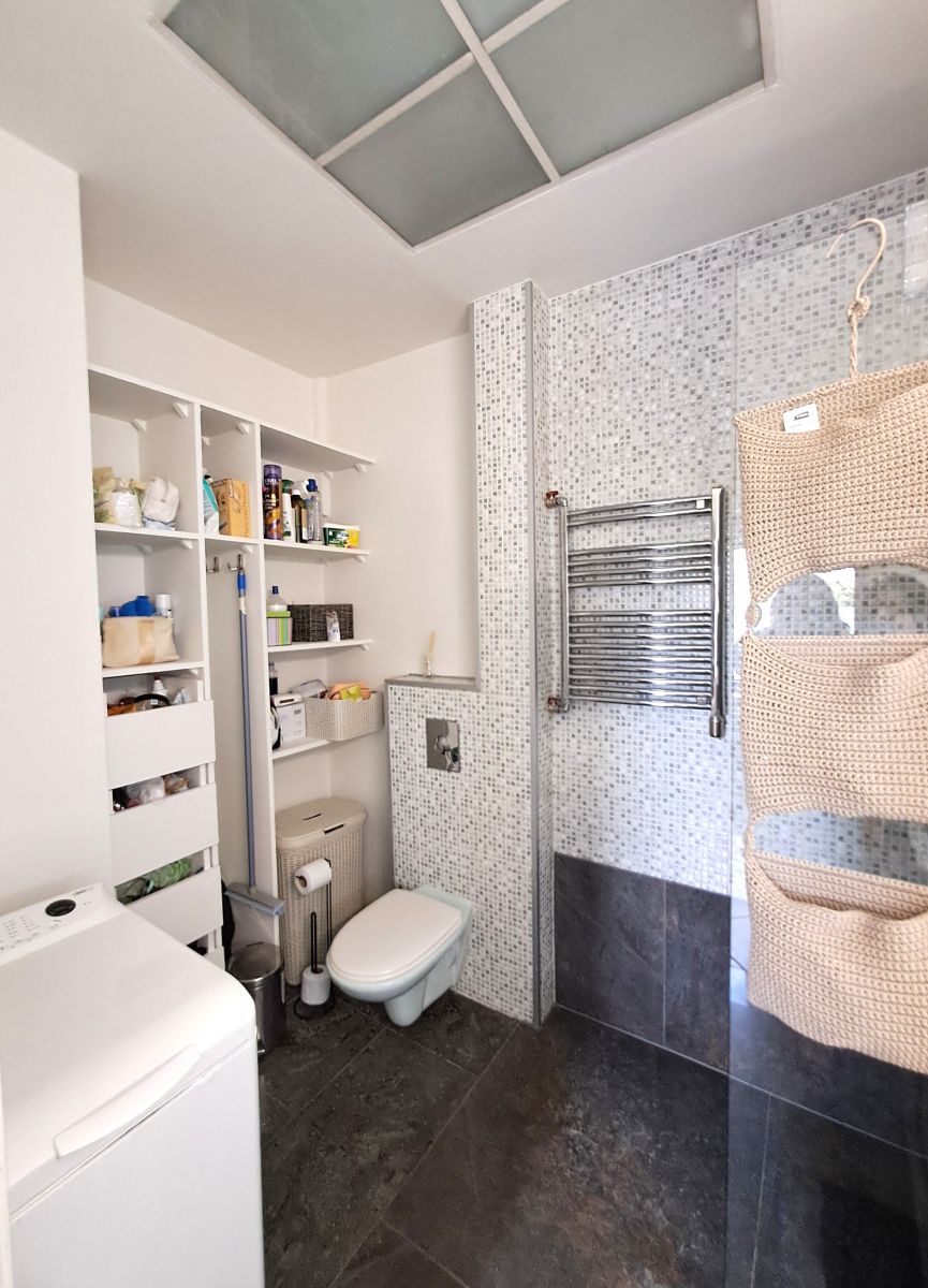 - przestronnej łazienki z kabiną prysznicową i pralką
